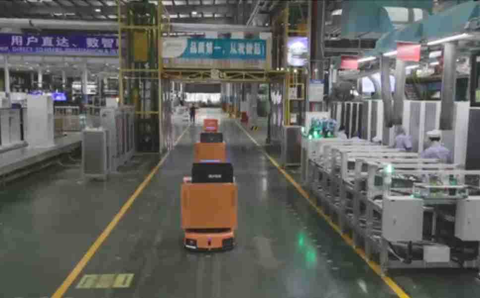 为车载冰箱物流配送打造的智能解决方案,,,包含产中物流通过潜伏举升AMR搬运至线边,,,,产后成品物流智能仓储,,流程包含产中物流智能齐套入库,,,线边安灯叫料AMR智能配送至线边,,,,成品入库、、、、出库,,,,通过无人堆高车机器人,,,智能仓储管理替代人工作业管理,,,实现更高存储、、、、更高效率、、、更具柔性化的解决方案。。。。